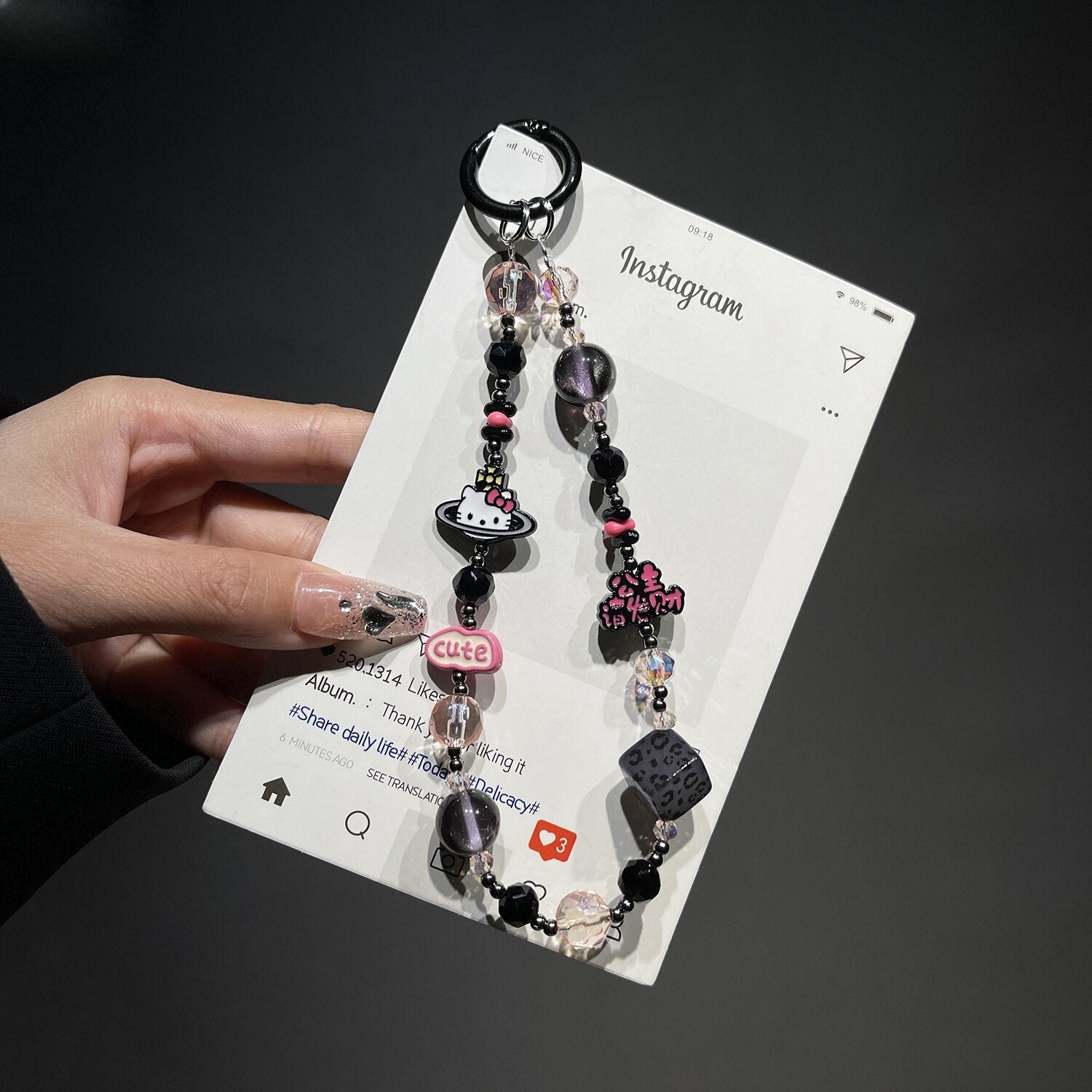 适用苹果华为小米手机挂绳公主请发财链短款垫片精致手腕绳手工Diy串珠小米高级轻奢少女挂件相机钥匙链通用