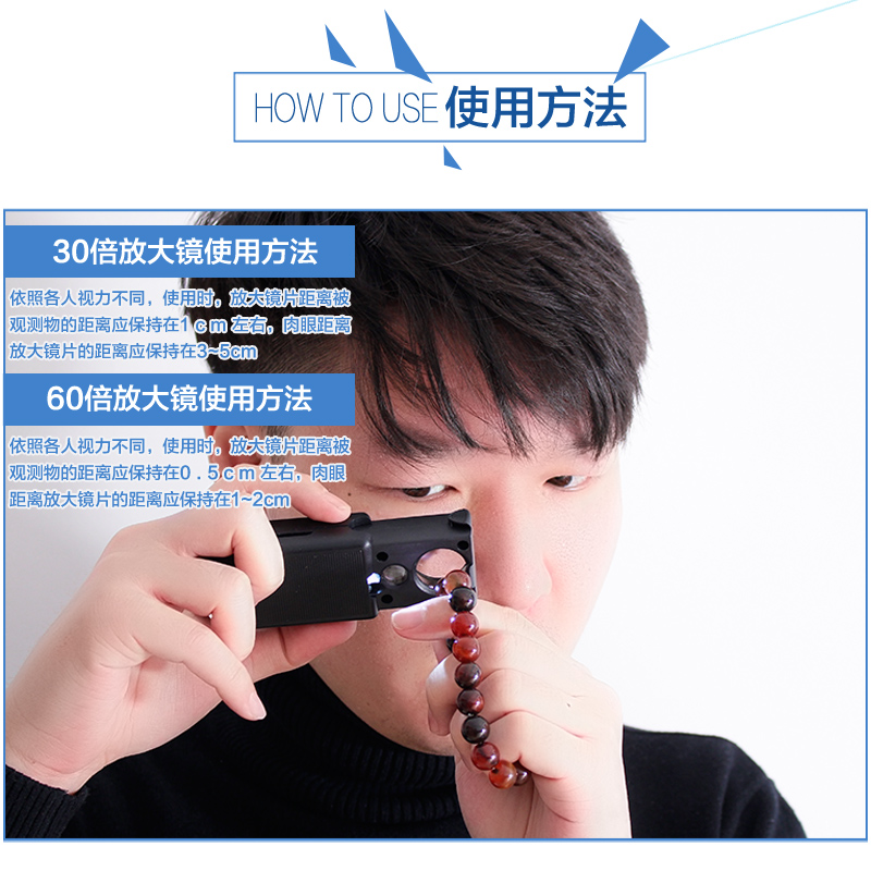 手持放大镜60倍抽拉式30带紫光灯便携珠宝鉴定银元钱币验烟酒真伪
