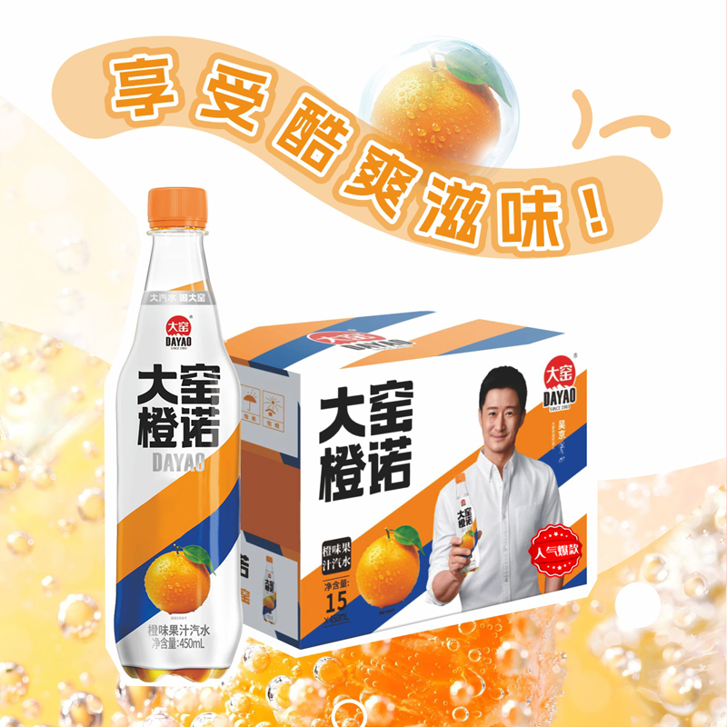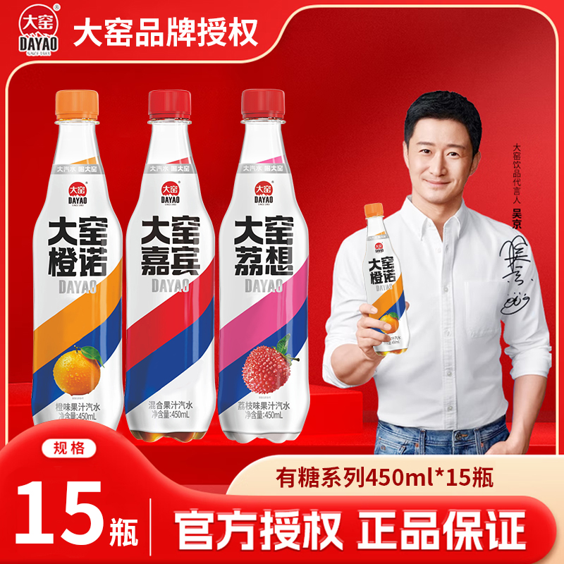 吴京代言含糖大窑汽水果味碳酸饮料果汁气泡水嘉宾橙诺450ml*15瓶