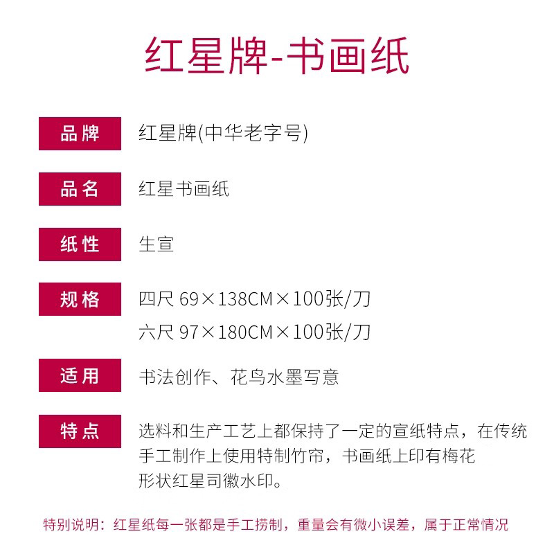 红星宣纸书画纸红星牌泾县宣纸旗舰店四尺生宣纸净皮创作书法作品纸专用纸初学者练习半生熟毛笔字国画书法纸