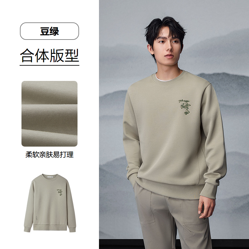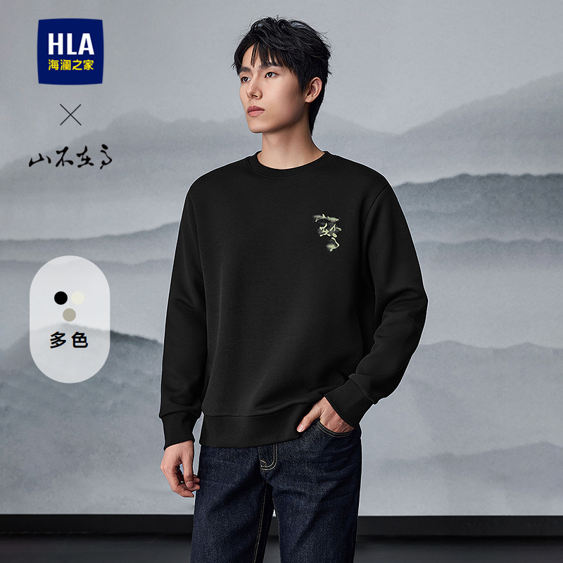 HLA/海澜之家山不在高系列25秋季新圆领刺绣国风柔软上衣卫衣男装