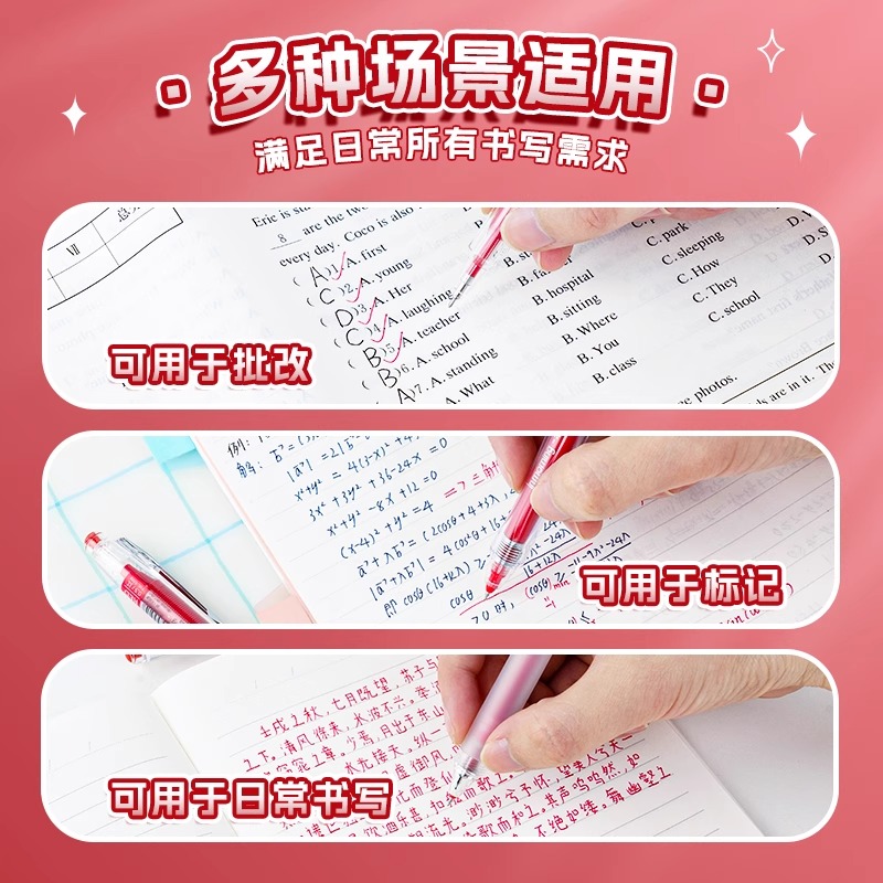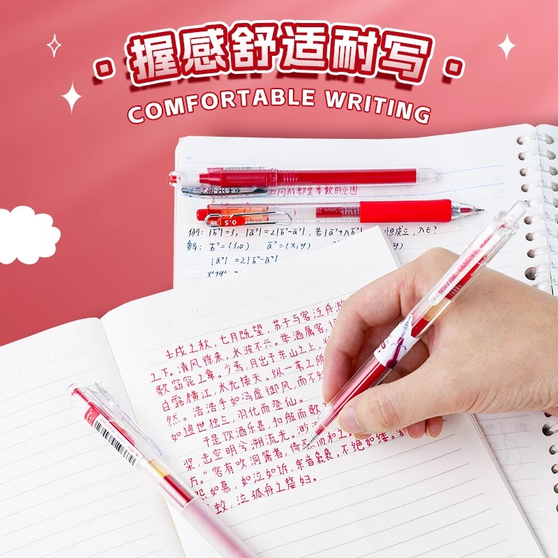 一木林红色按动中性笔套装简约高颜值红笔学生订正改错专用老师批改作业大容量水笔速干顺滑多种双珠书写教师