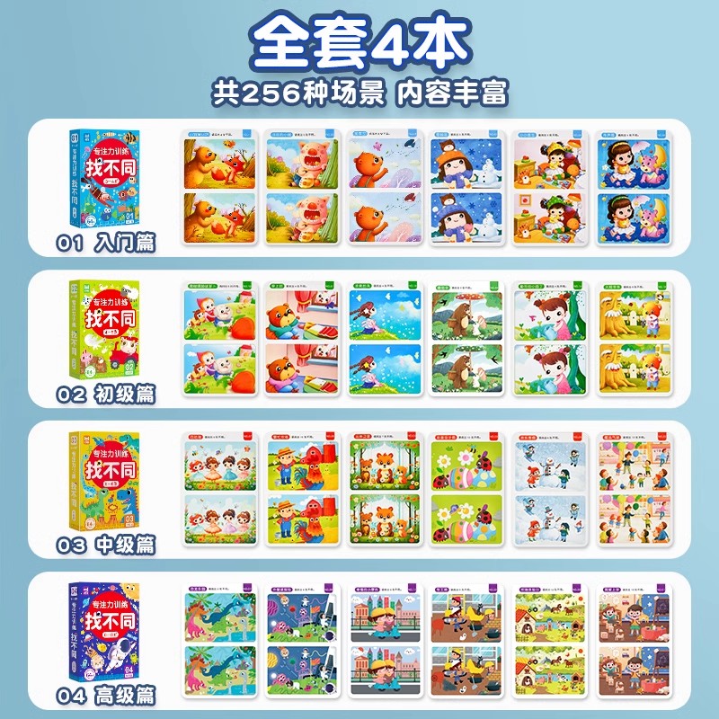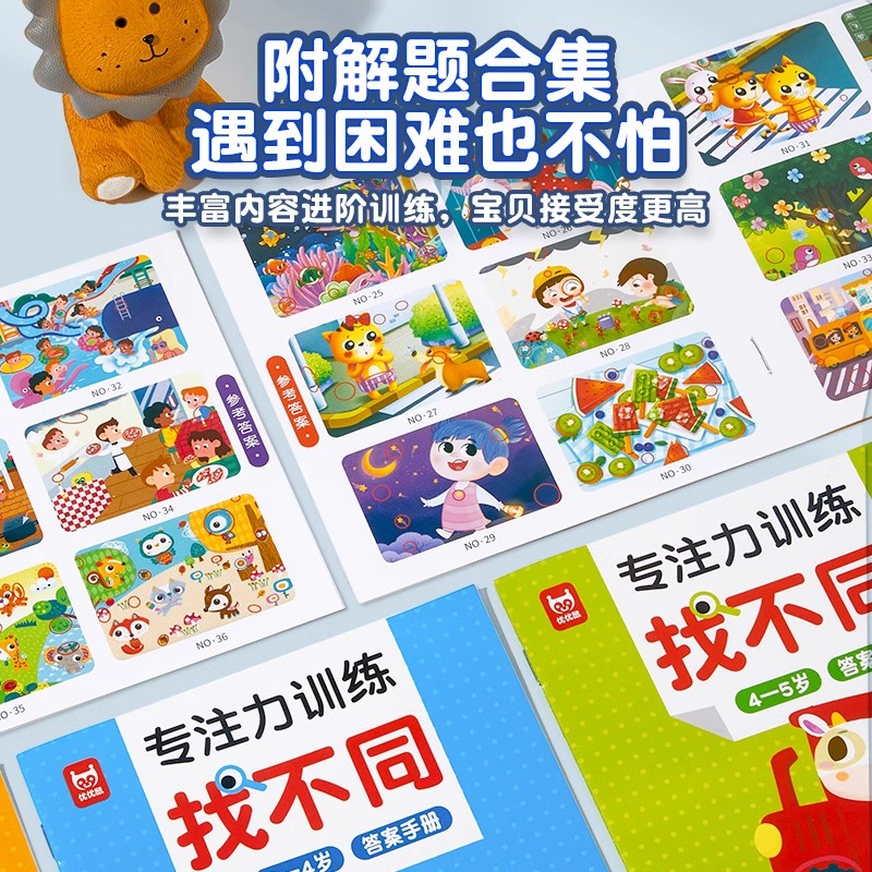 幼儿宝宝找不同专注力训练益智游戏卡片23468岁以上儿童趣味的书全脑思维智力开发动脑玩具图书赠反复笔答案手工入门培养艺术故事