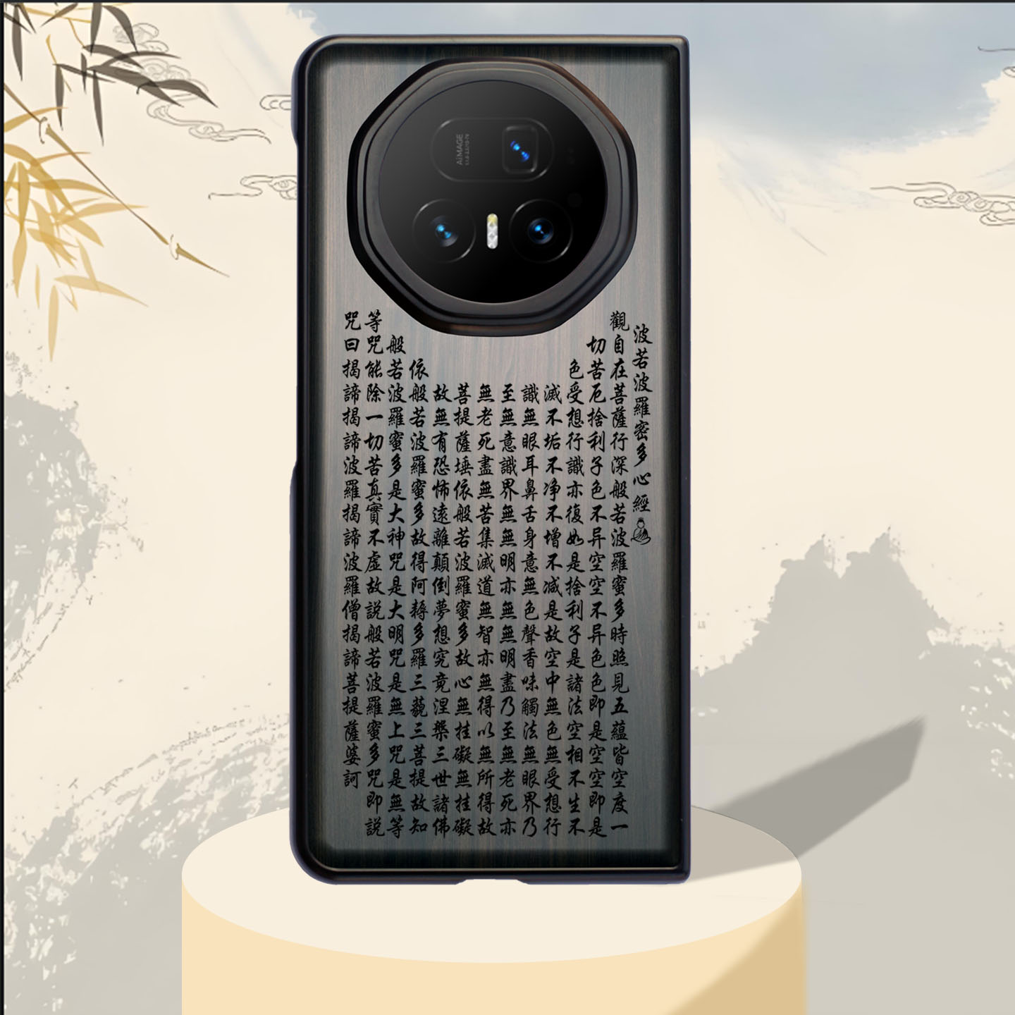 适用于荣耀MagicV5手机壳pro紫光檀木防摔MagicV3全包般若波罗蜜多心经保护套VS3平面雕刻可定制VS3至臻版