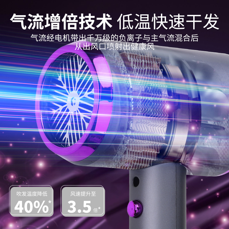 高速吹风机家用负离子护发大风力中空无叶速干降噪电吹风筒华强北