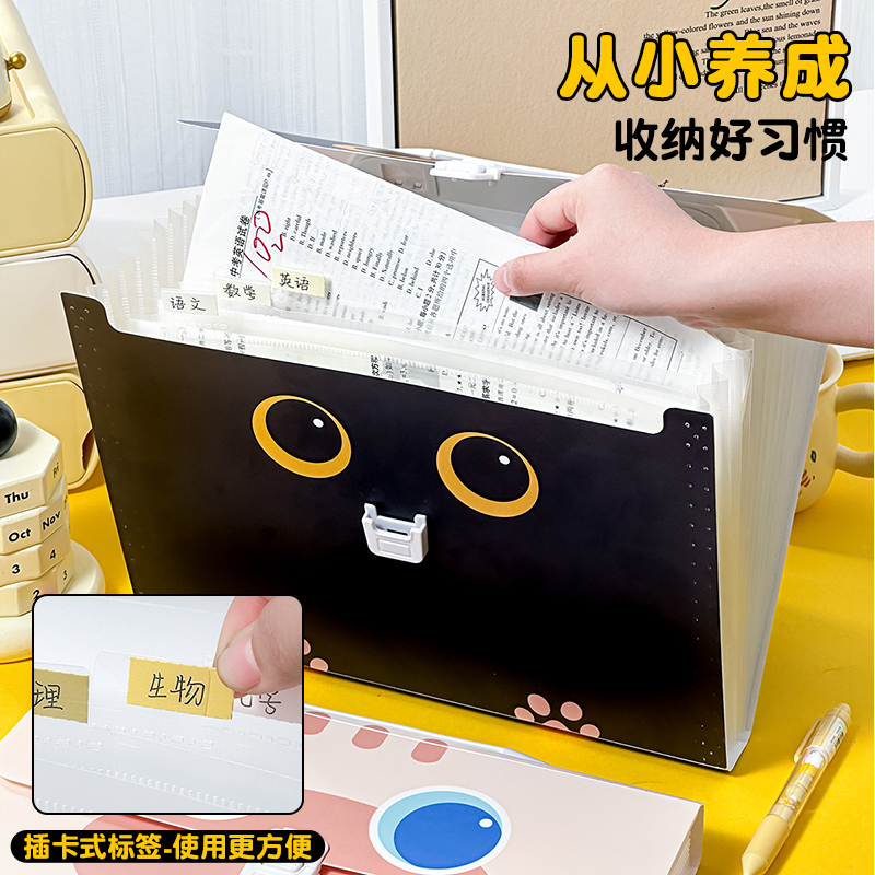 三年二班 LOOK系列A4文件袋大容量13入风琴包多层文件夹小学生用透明插页试卷整理初中生试卷收纳袋资料册