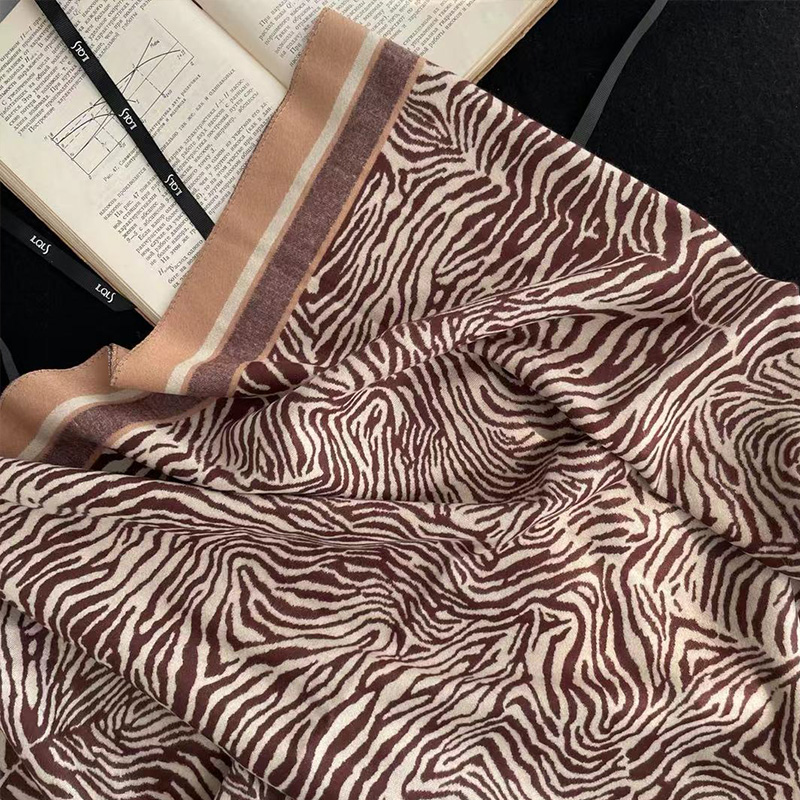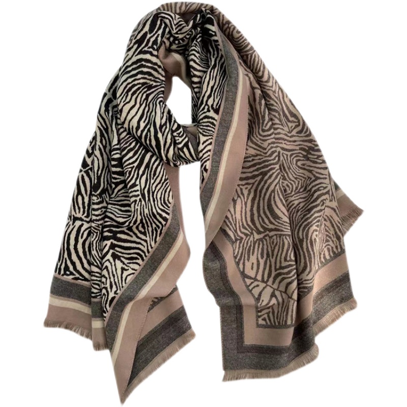 精致斑马纹黑白围巾女冬季韩版时尚百搭虎皮纹披肩男休闲围脖保暖