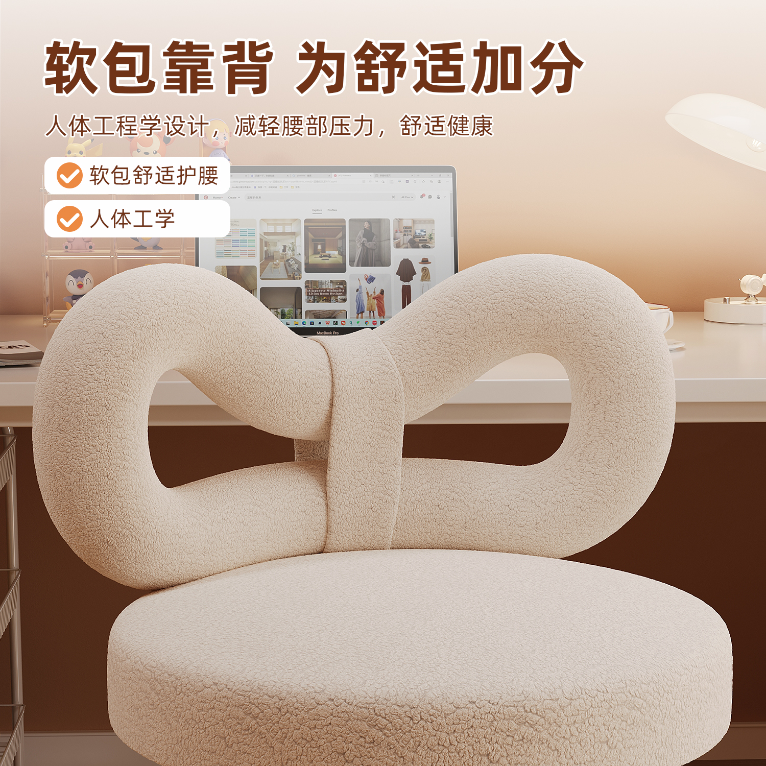 奶油风化妆凳女生卧室梳妆台椅子轻奢高级感化妆美甲椅靠背久坐