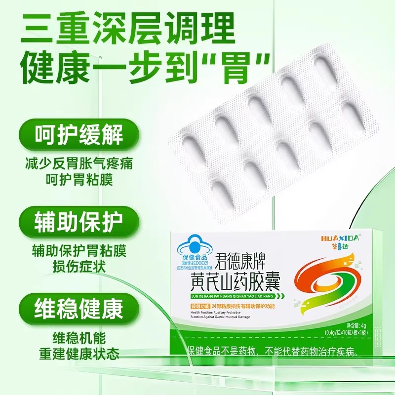 调理胃痛胃胀华喜达君德康牌黄芪山药胶囊保护胃粘膜正品健康肠胃