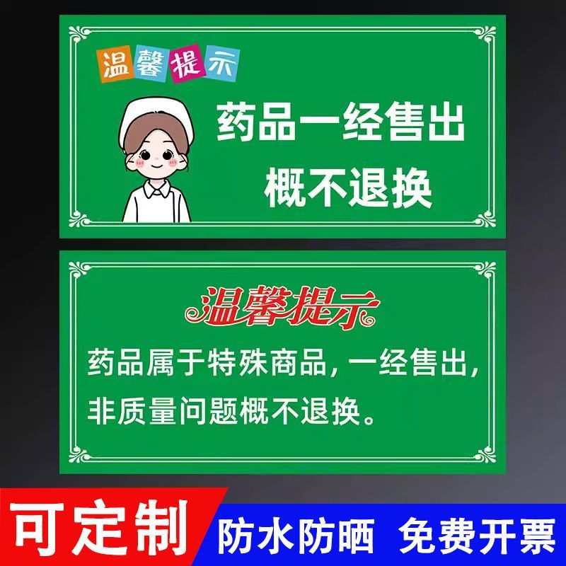 药店药房温馨提示贴纸药品一经售出概不退换标识贴医院不干胶贴纸