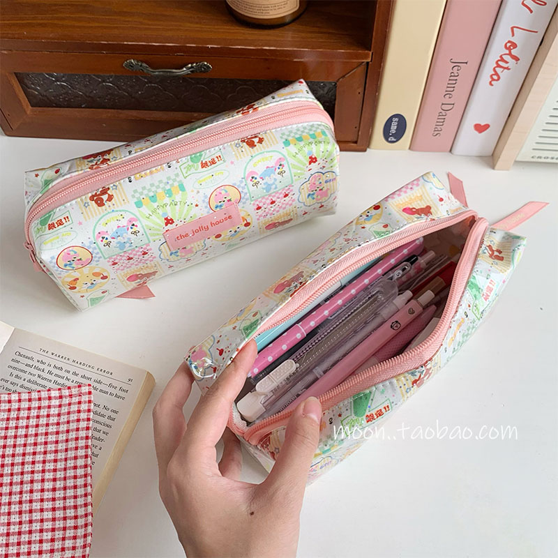 笔袋ins韩系女高颜值便捷大容量收纳包pu碎花铅笔盒初中生文具盒