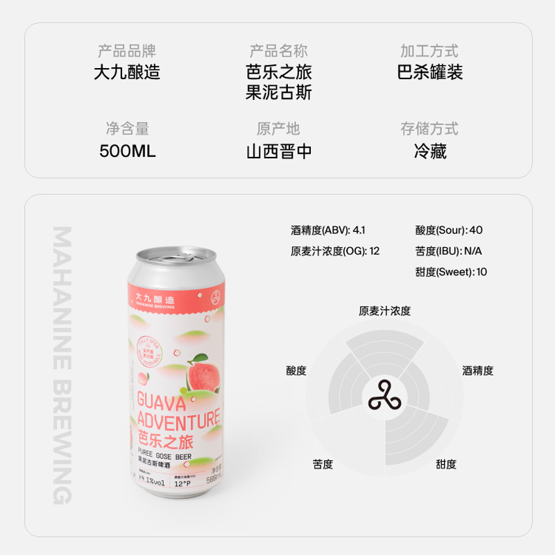 大九酿造旗舰店芭乐之旅果泥古斯啤酒500ML国产精酿啤酒水果微醺