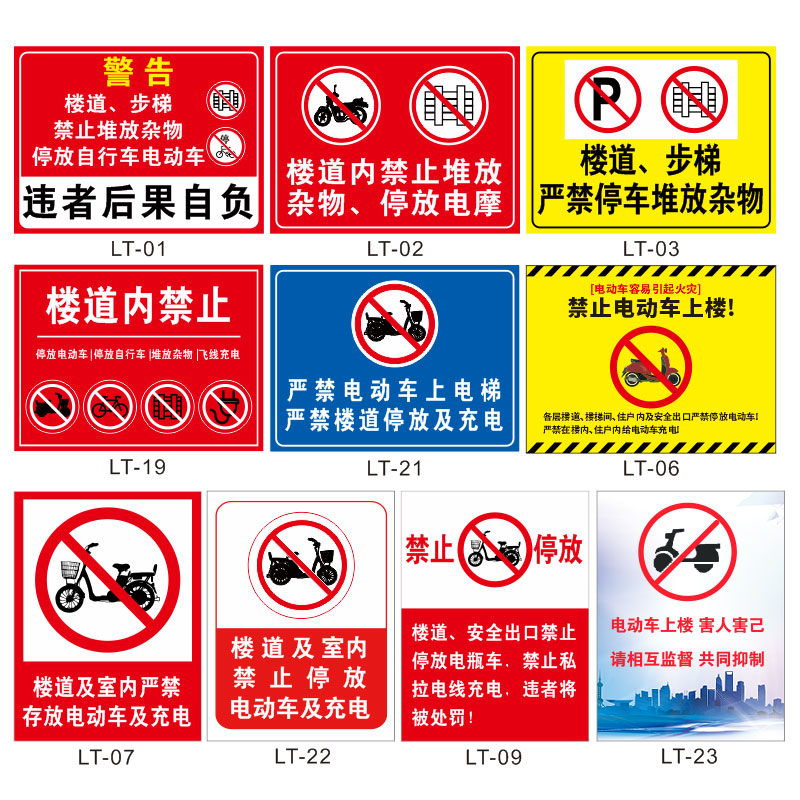 楼道内禁止停放电动车自行车及充电标识牌标志牌提示牌消防应急通道严禁停车堆放杂物堵塞占用警示牌标牌墙贴