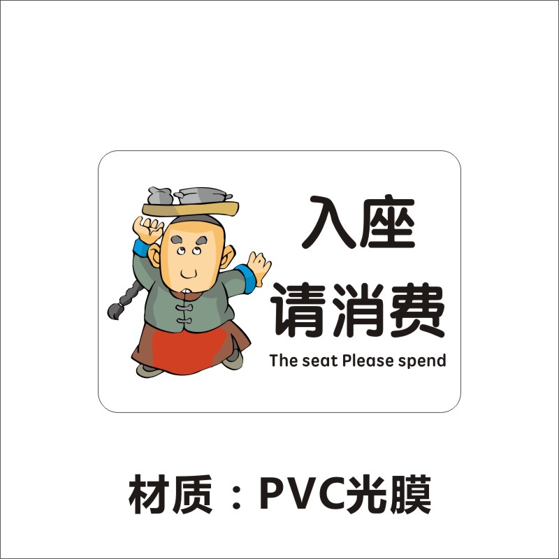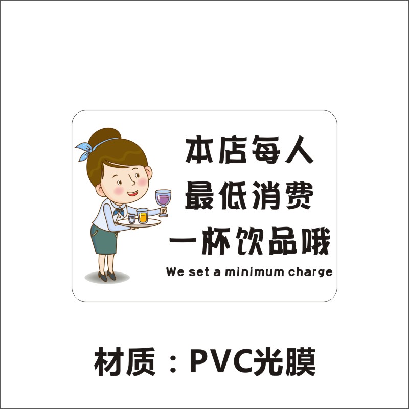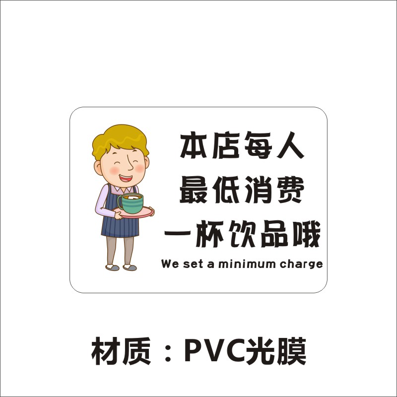 入座请消费奶茶咖啡店餐厅最低消费外食莫入PVC不干胶标签贴纸B