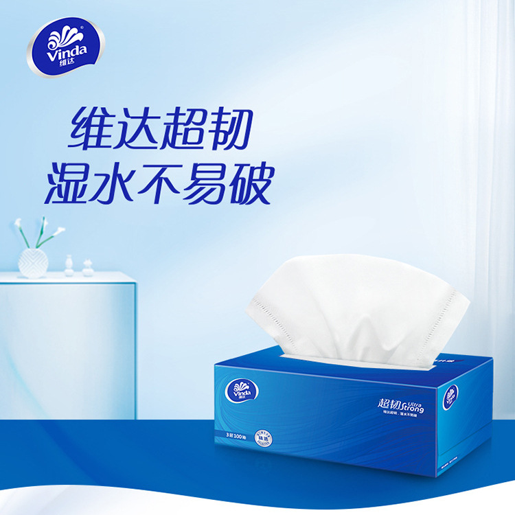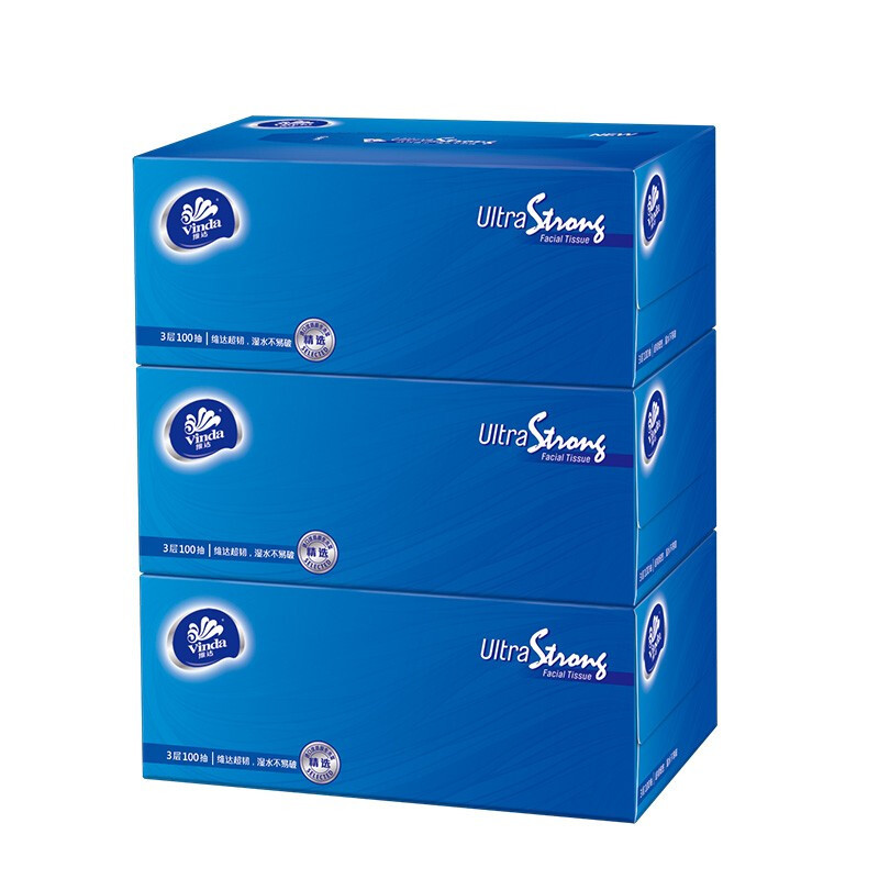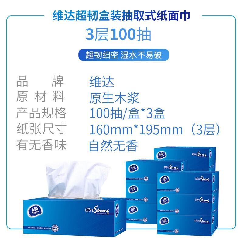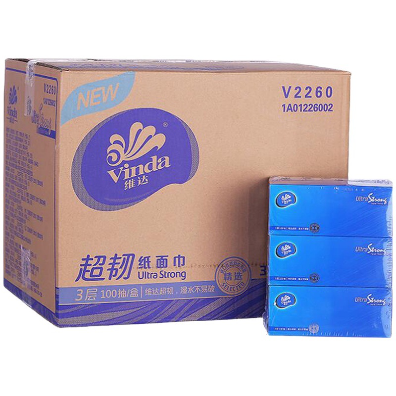 维达3层100抽超韧硬盒装面巾纸商用抽纸卫生纸面巾纸擦手纸V2260
