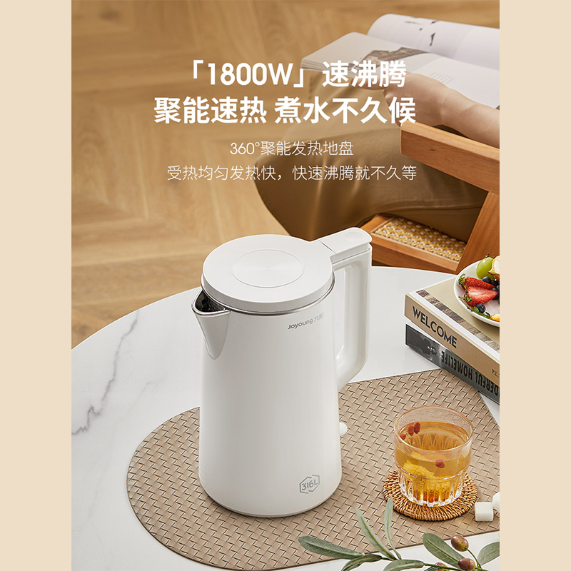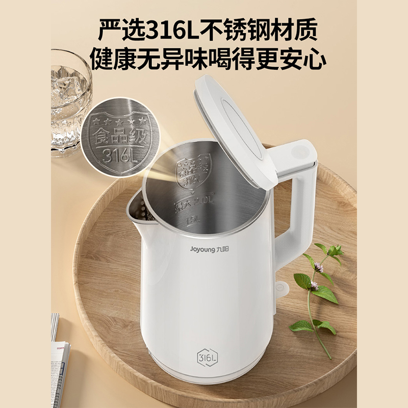 九阳家用电热水壶2L烧水壶316L不锈钢保温一体自动断电宿舍开水壶