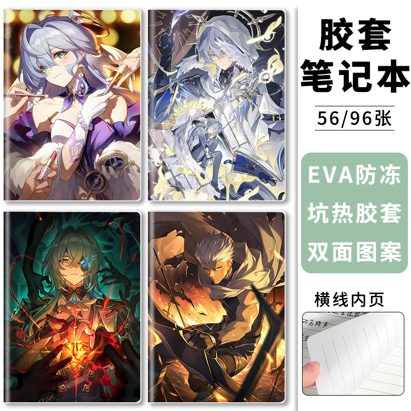 星铁遐蝶风堇星期日胶套A5\B5笔记本崩坏那刻夏知更鸟可平摊加厚护眼米黄色横线56\96张学生手抄本纠错本日记