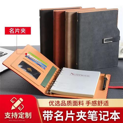 极速2023e新款a5创意皮面多功能活页本带名片夹商务会议笔记本活