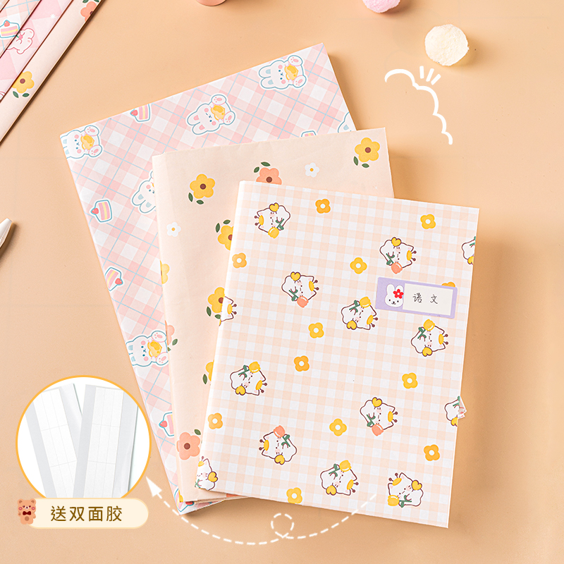 可爱包书纸书皮套素材大张大尺寸a4高颜值小学生书套彩色纸质不透明包书皮纸ins风情人节礼品礼物牛皮包装纸