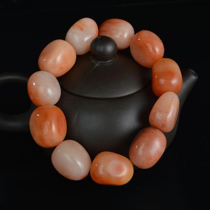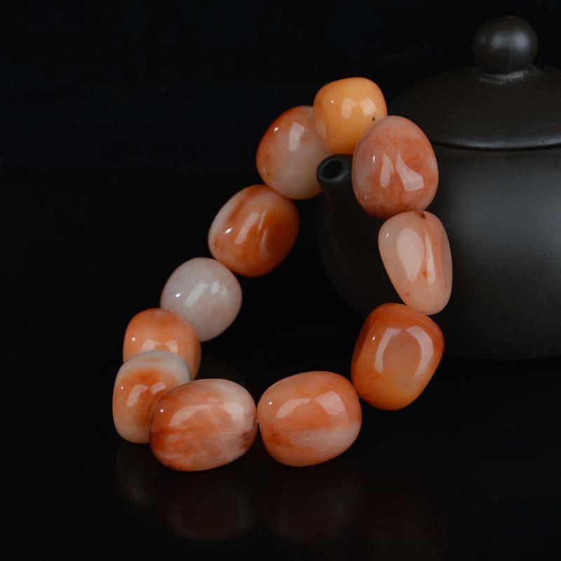 新疆金丝玉玉石籽料手链 天然戈壁玉红玉随形玉手串 品牌原石料子
