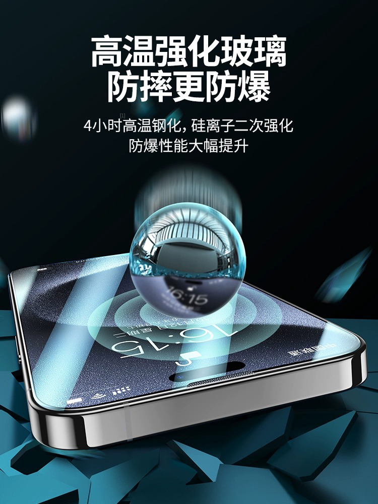 闪魔适用iphone16promax钢化膜15pro无纹苹果17ProMax全屏新款13手机膜14Pro抗反射贴膜无尘仓防摔12屏幕保护