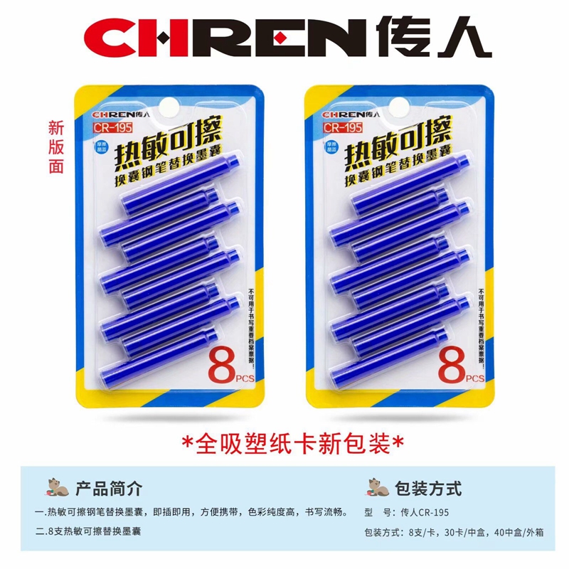 传人学生热敏可擦钢笔墨囊3.4mm口径易可擦热敏墨囊摩擦晶蓝墨蓝