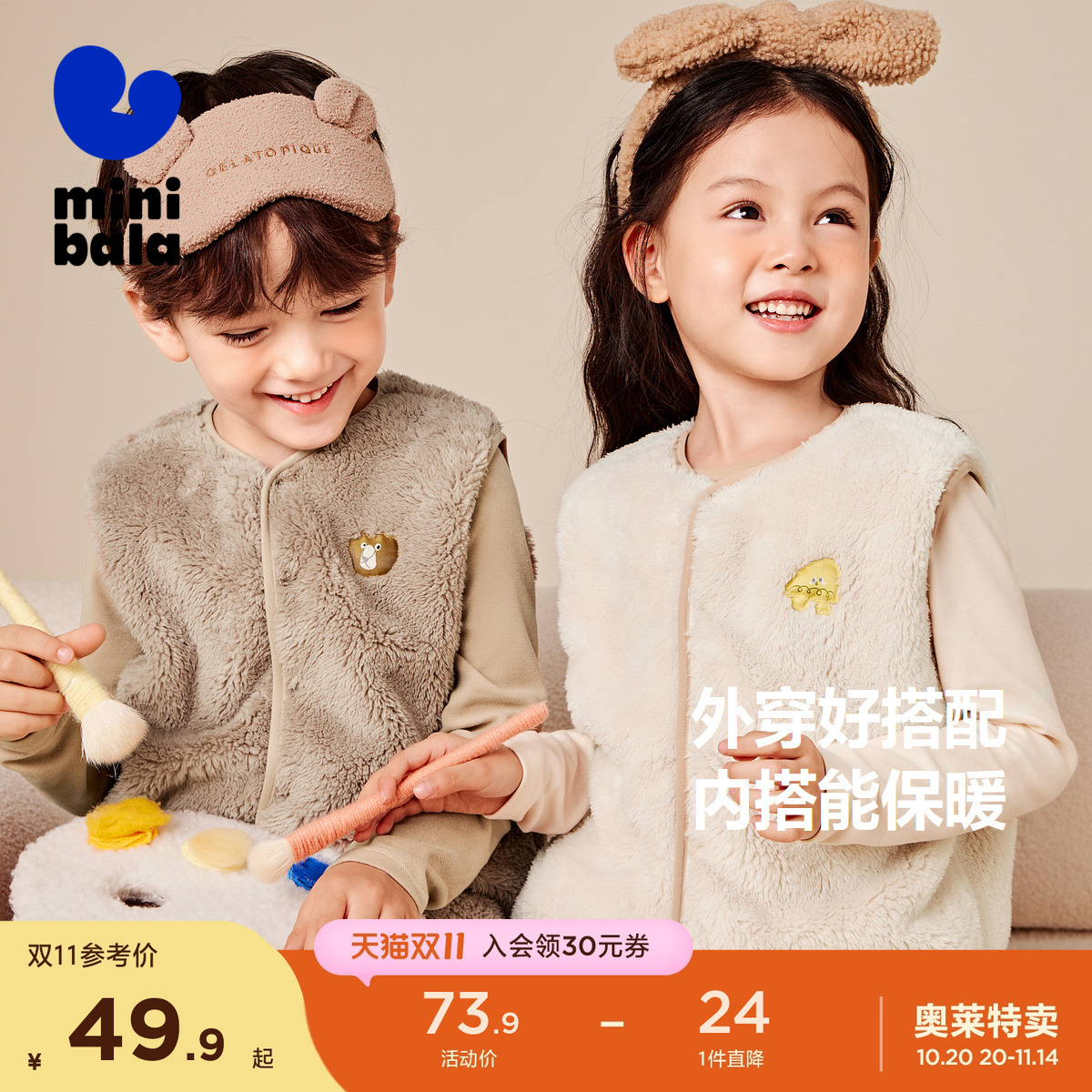 迷你巴拉巴拉男童女童打底背心秋季新款家居儿童马甲秋冬珊瑚绒