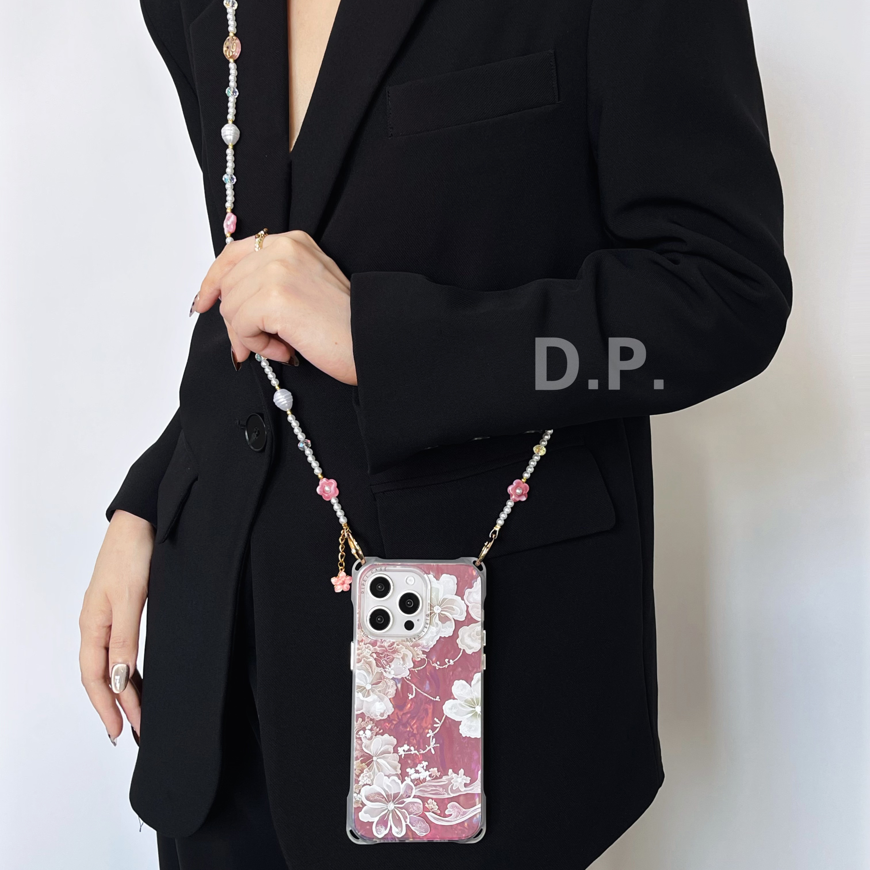 新中式羽纱花挂绳手机壳适用于苹果17promax华为荣耀vivo小米15挂脖四角开孔手提链条斜挎侧背式国风防摔古风