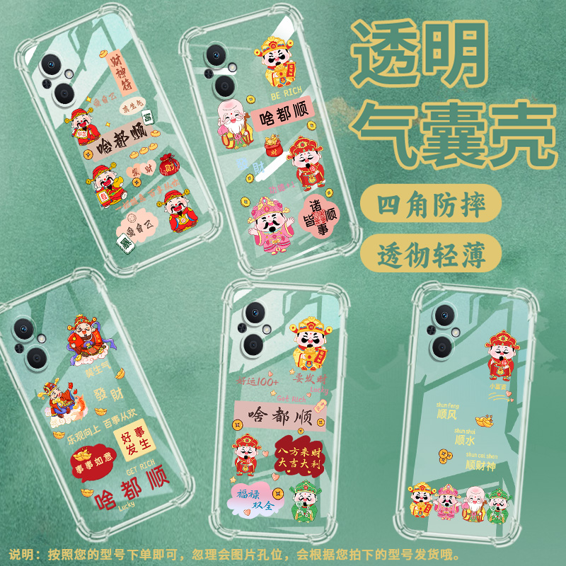 适用OPPOA96气囊壳A97手机壳A98保护壳CPH2333啥都顺商务财神文字新款网红insGetRich文艺财神乐观向上幸运