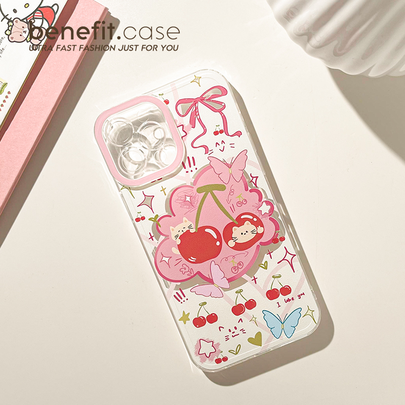 benefit可爱少女心樱桃小猫17pro16适用于iphone15promax苹果15PRO手机壳13新款14套12创意11透明xs硅胶xr防