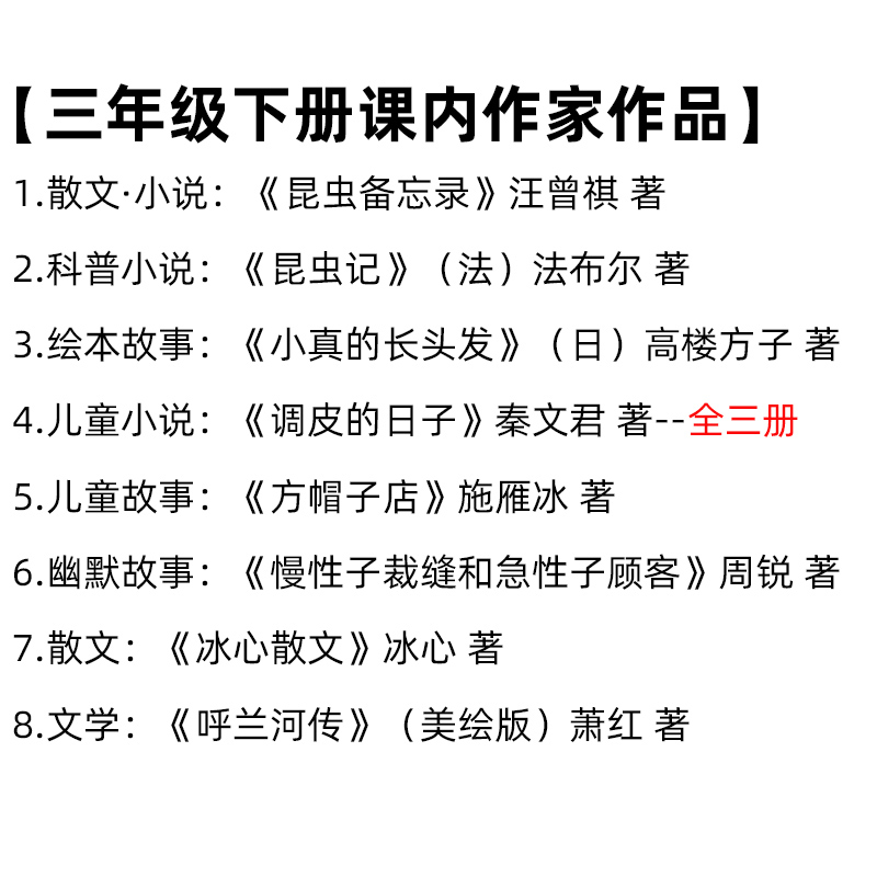 三年级下册课内作家小珍的长头发小真的长头发高楼方子著昆虫备忘录汪曾祺著法布尔的昆虫记调皮的日子方帽子店呼兰河传美绘本版