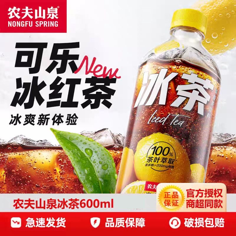 农夫山泉冰茶600ml瓶柠檬味红茶含汽碳酸饮料非冰红茶饮品可乐