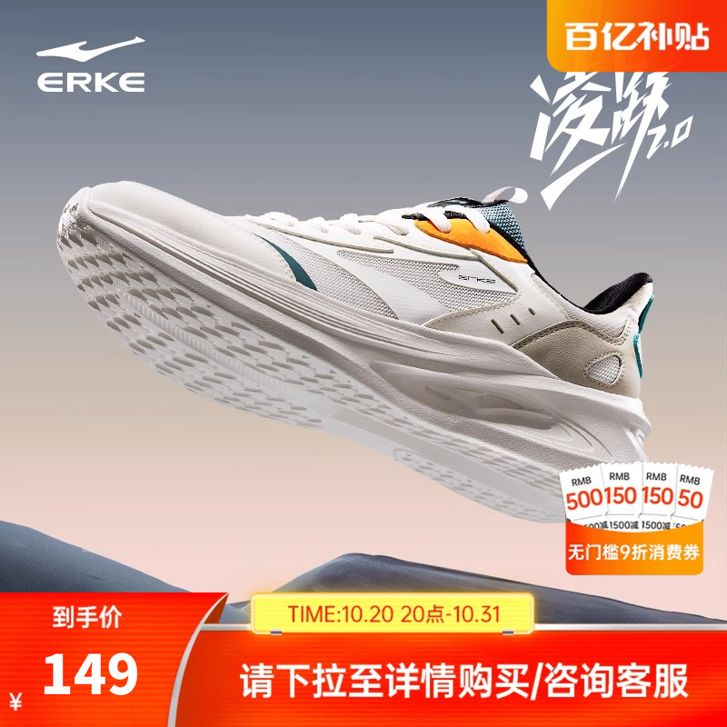 鸿星尔克男鞋运动鞋秋季新款轻便皮面跑步鞋软底减震网面透气跑鞋