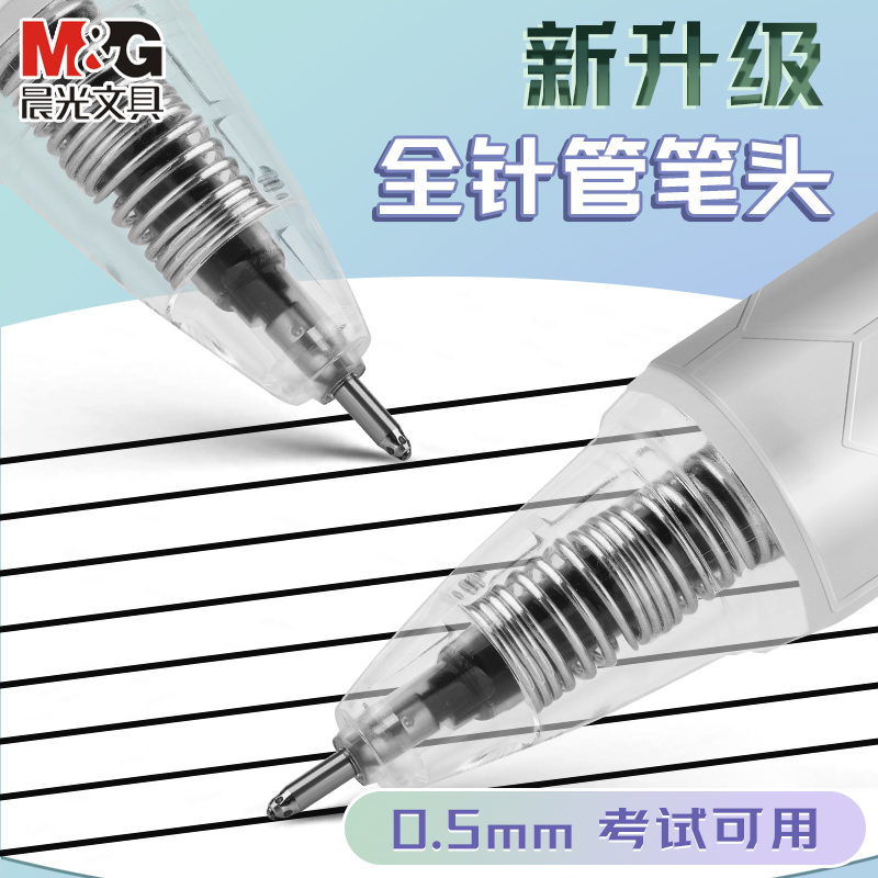 晨光针顺芯按动中性笔全针管速干顺滑刷题学生考试用0.5mm黑色高颜值按压式黑笔水笔碳素水性签字笔芯