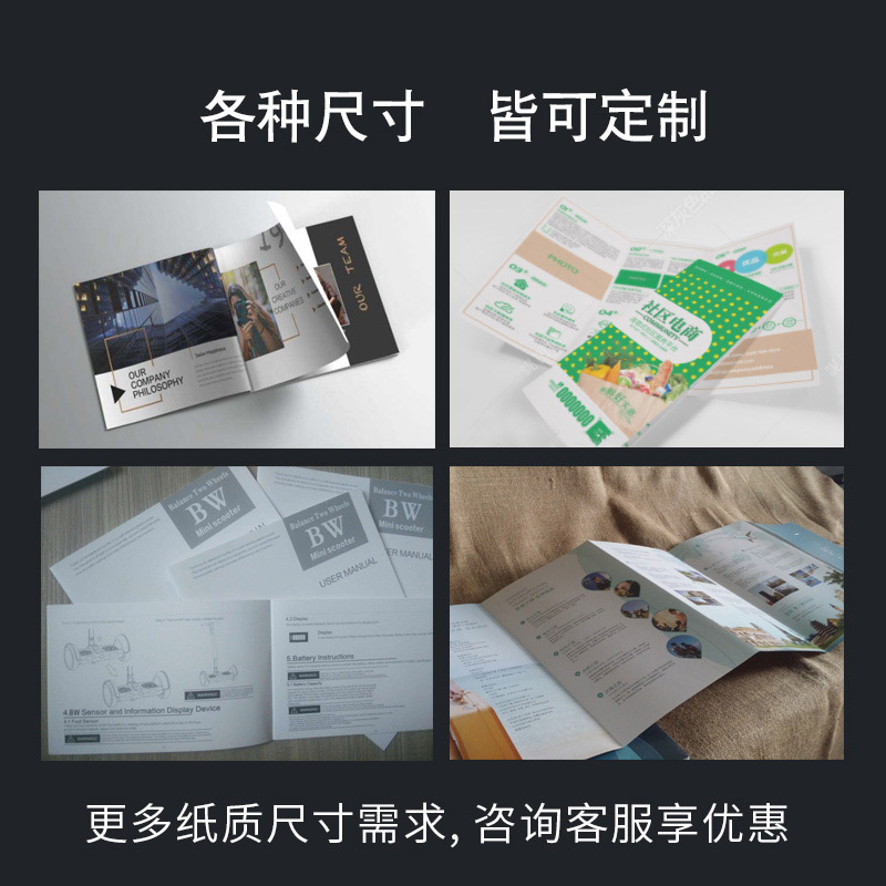 印刷折页宣传单a4企业画册铜版纸员工手册a5图册精装说明书多折页三折四折风琴折文件封套卡片明信片样本菜单