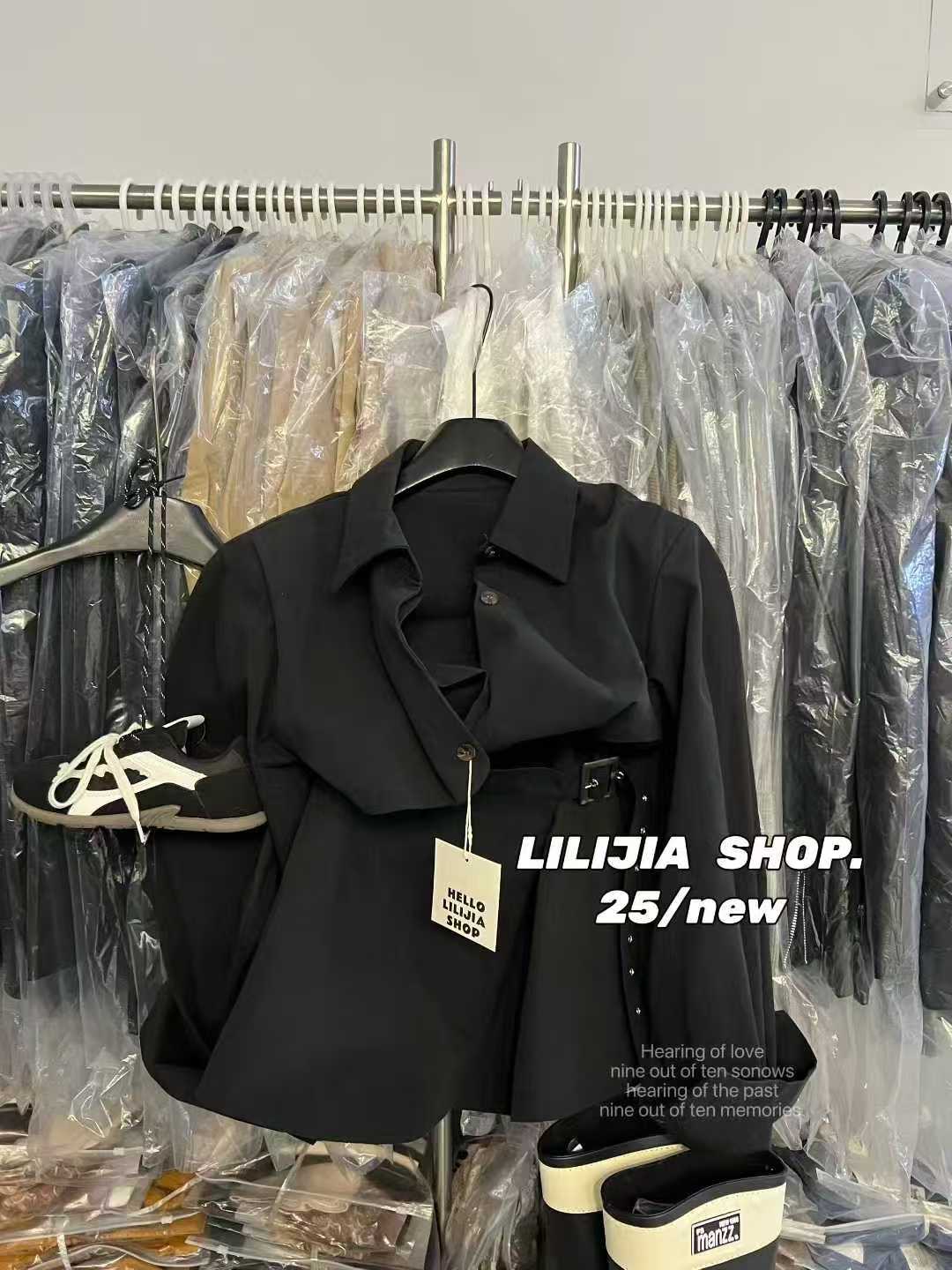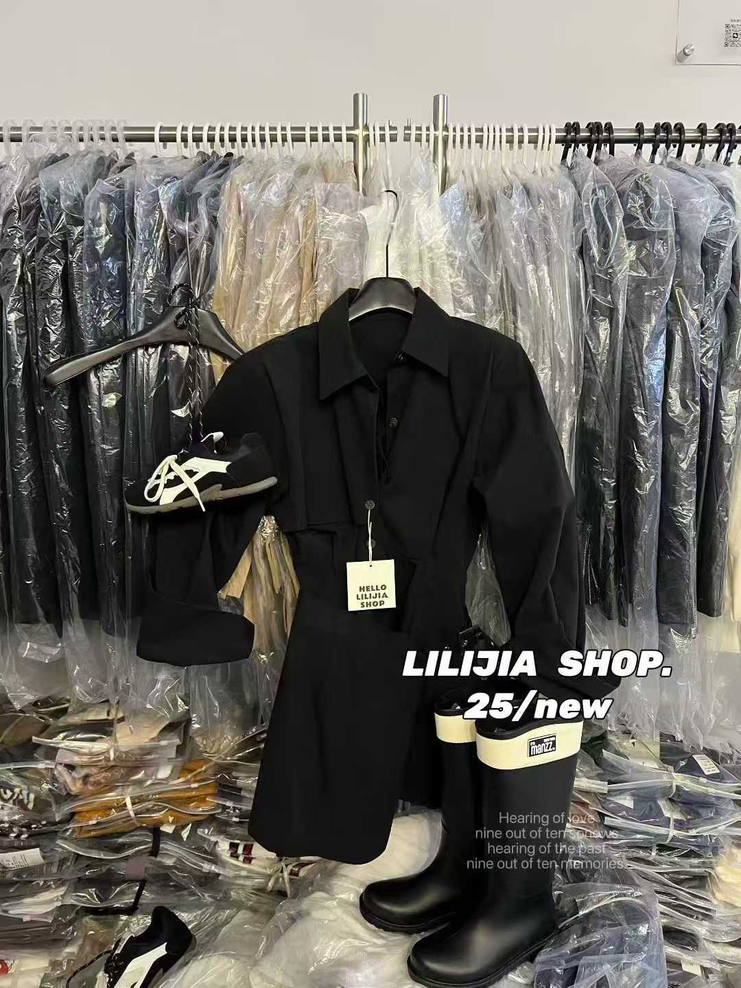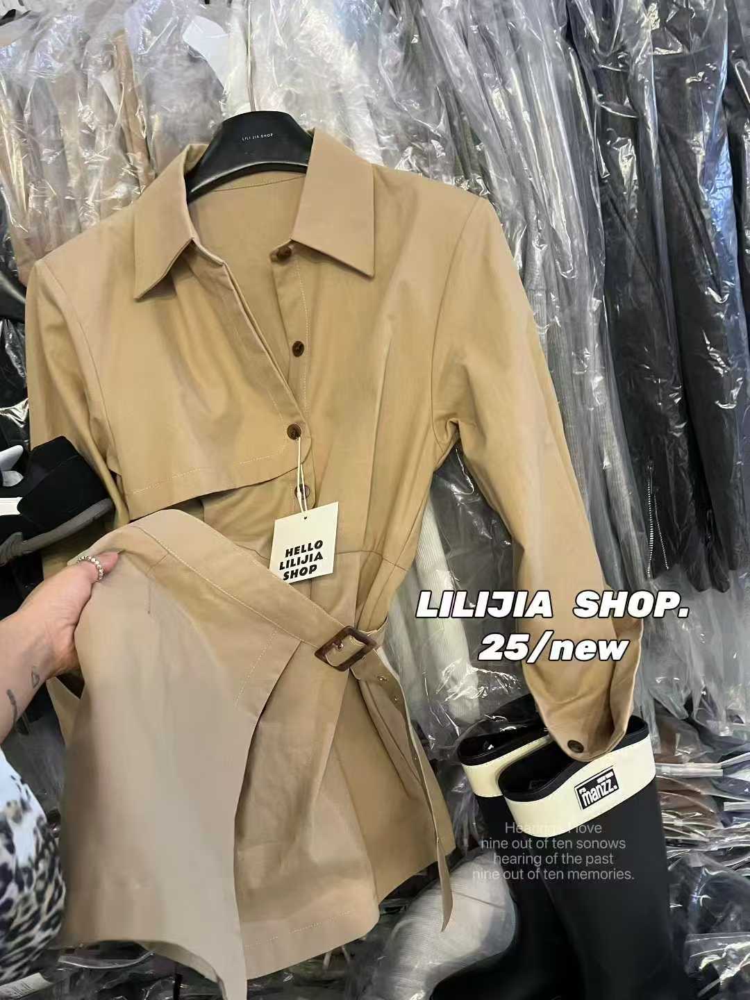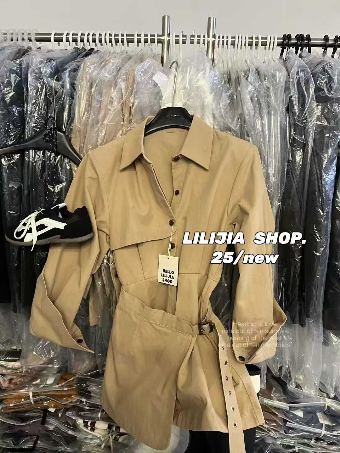 韩国东大门2025秋季新款收腰显瘦绑带设计假两件套风衣外套连衣裙