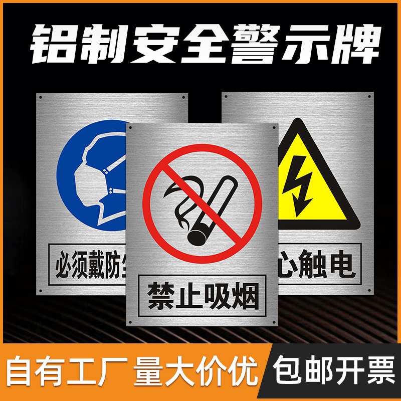 铝板安全标识牌警示牌定制高压危险电力工厂车间施工标示牌消防标牌禁止吸烟严禁烟火当心高温有电危险铝制