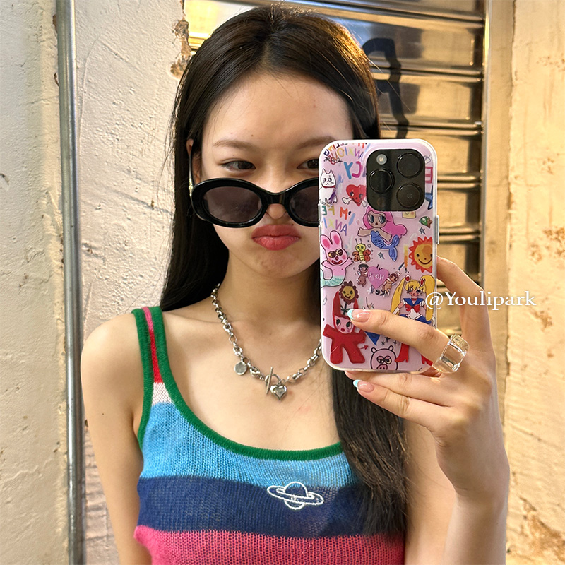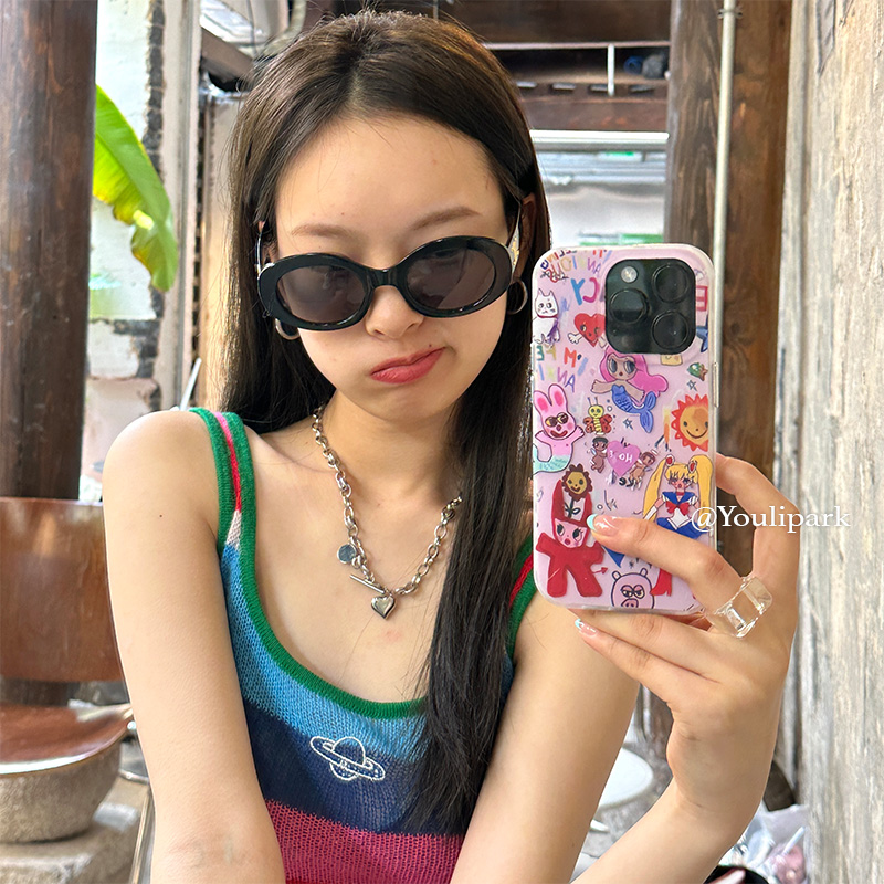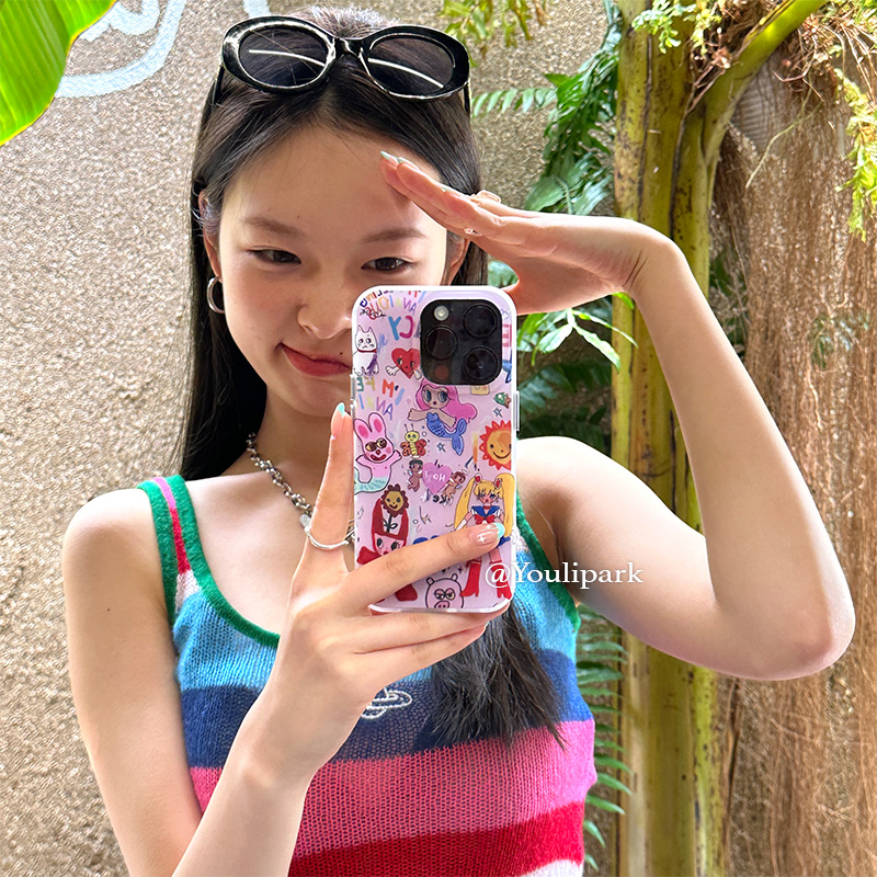 由里公园ins张婧仪同款少女可爱涂鸦插画适用17pro苹果17ProMax手机壳iPhone16全包17新款14Promax保护套15软
