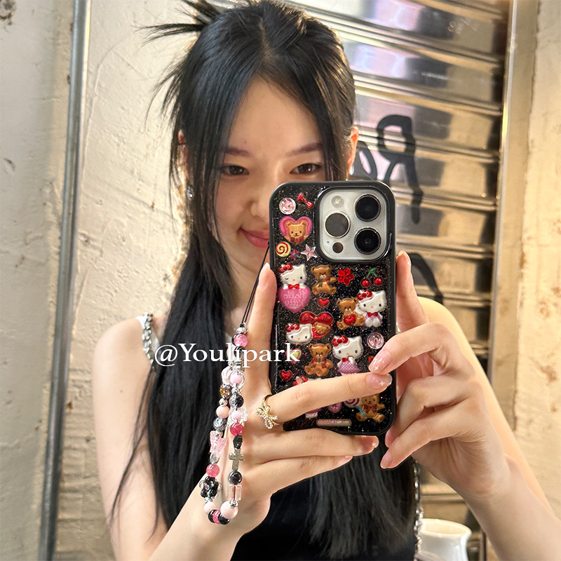 由里公园ins小众少女甜酷滴胶猫咪挂链15适用17pro苹果17ProMax手机壳iPhone16全包17新款14Promax保护套13软