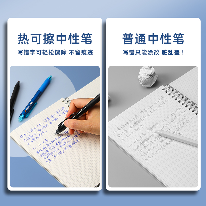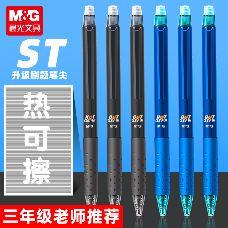 晨光按动可擦笔小学生专用热可擦中性笔三年级黑色晶蓝升级ST笔头热敏可擦笔磨易摩易摩擦魔力擦笔笔芯替换芯