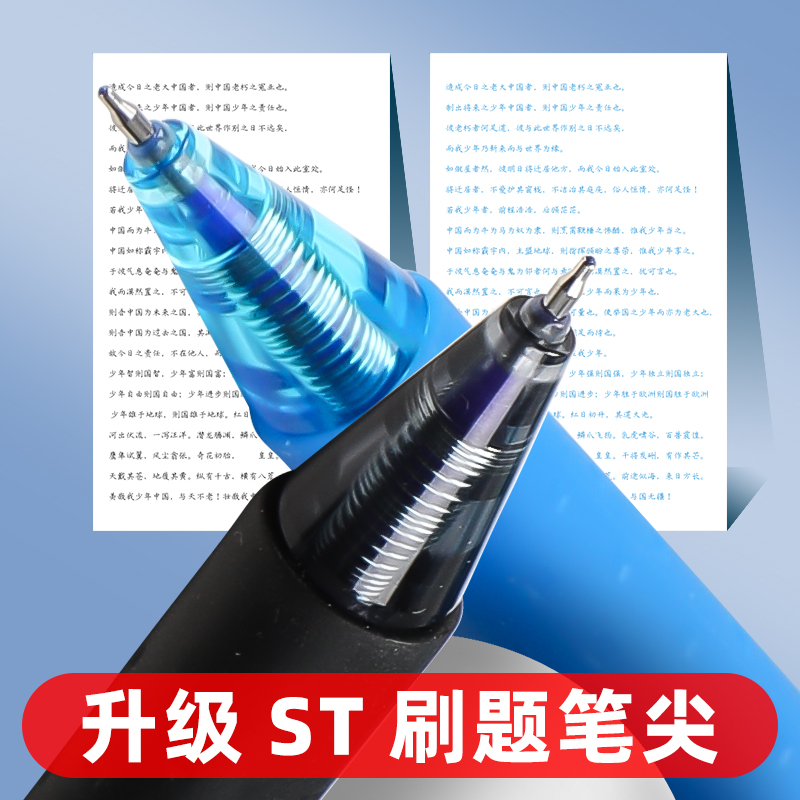 ST刷题笔高颜值按动中性笔圆珠笔黑色水笔小学生专用考试0.5速干碳素笔水性黑笔按压式做笔记签字笔非按斤卖