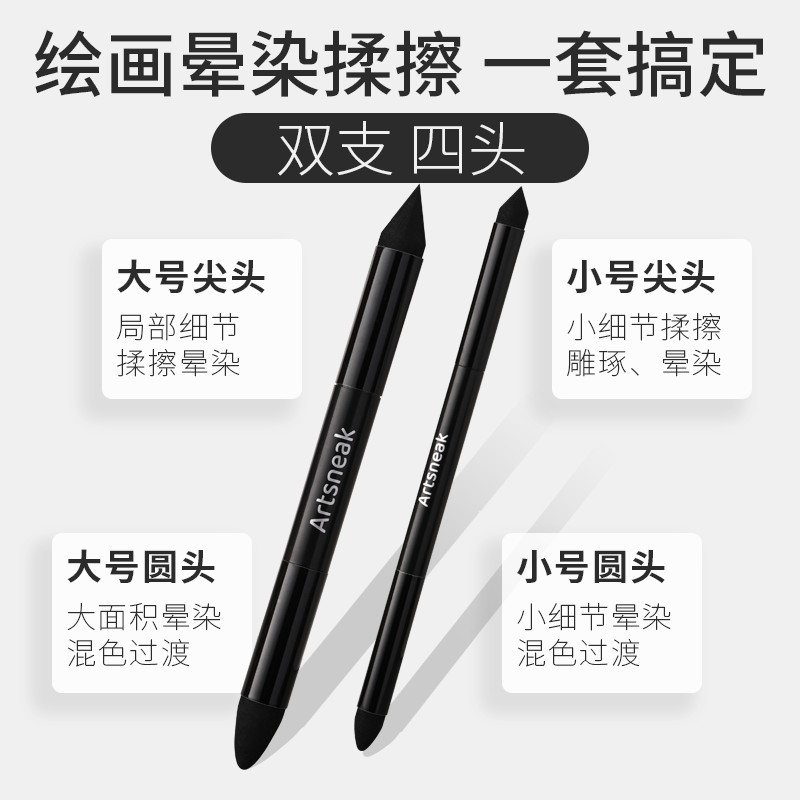 超软油画 画棒专用揉擦笔双头双支套装晕染混色细节阴影揉擦海绵工具