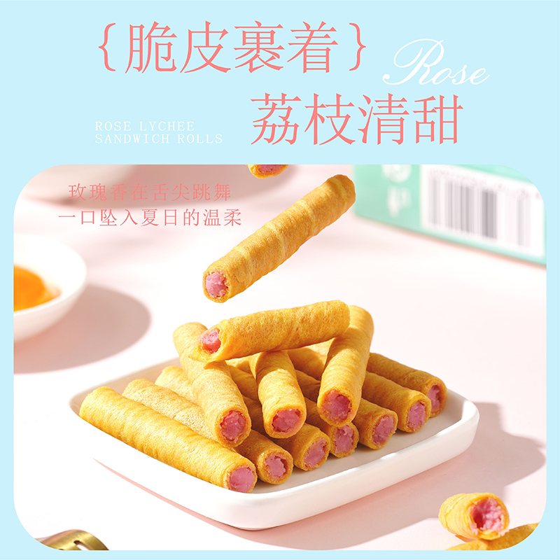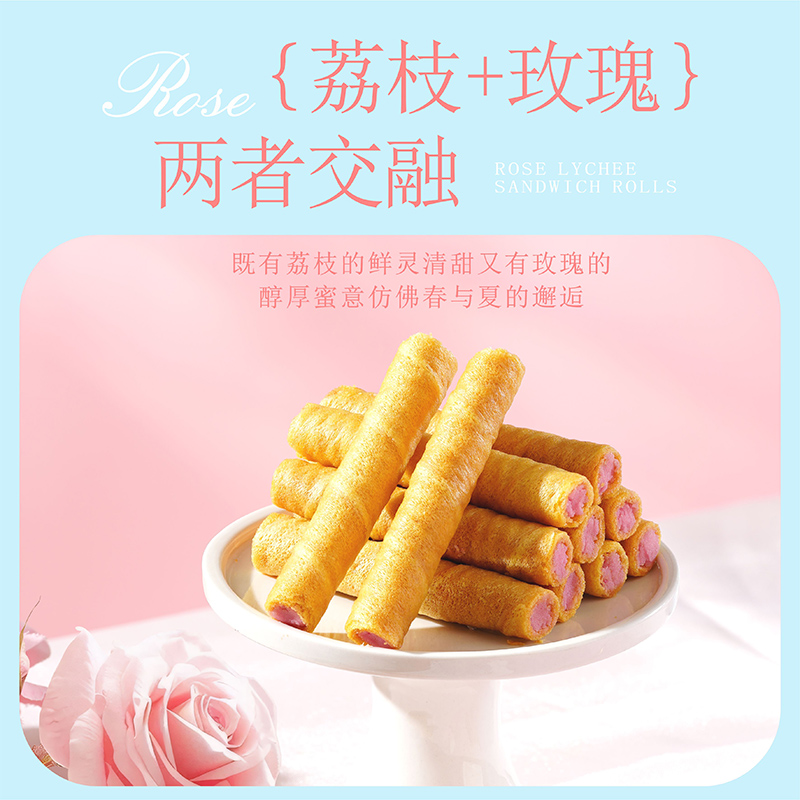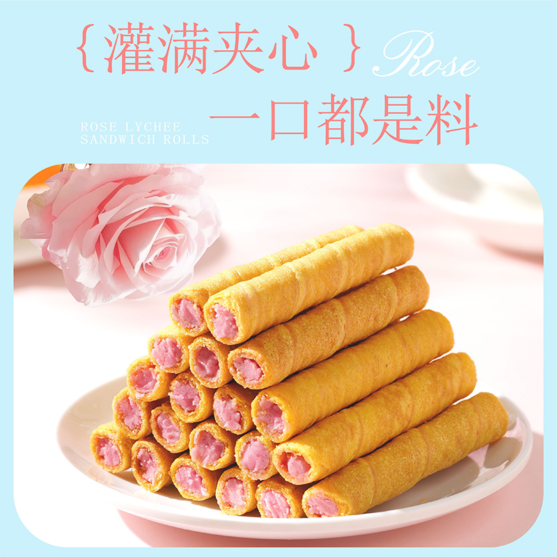 网红新品】玫瑰荔枝夹心蛋酥卷酥脆饼干整箱注心鸡蛋卷休闲零食