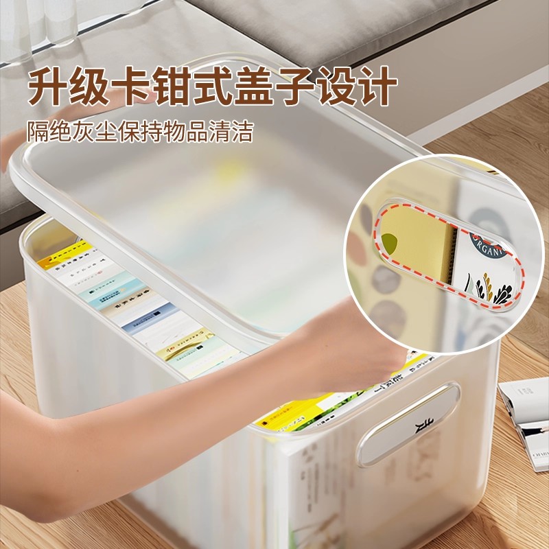 桌面收纳盒家用透明塑料带盖收纳箱零食玩具整理箱长方形收纳筐子