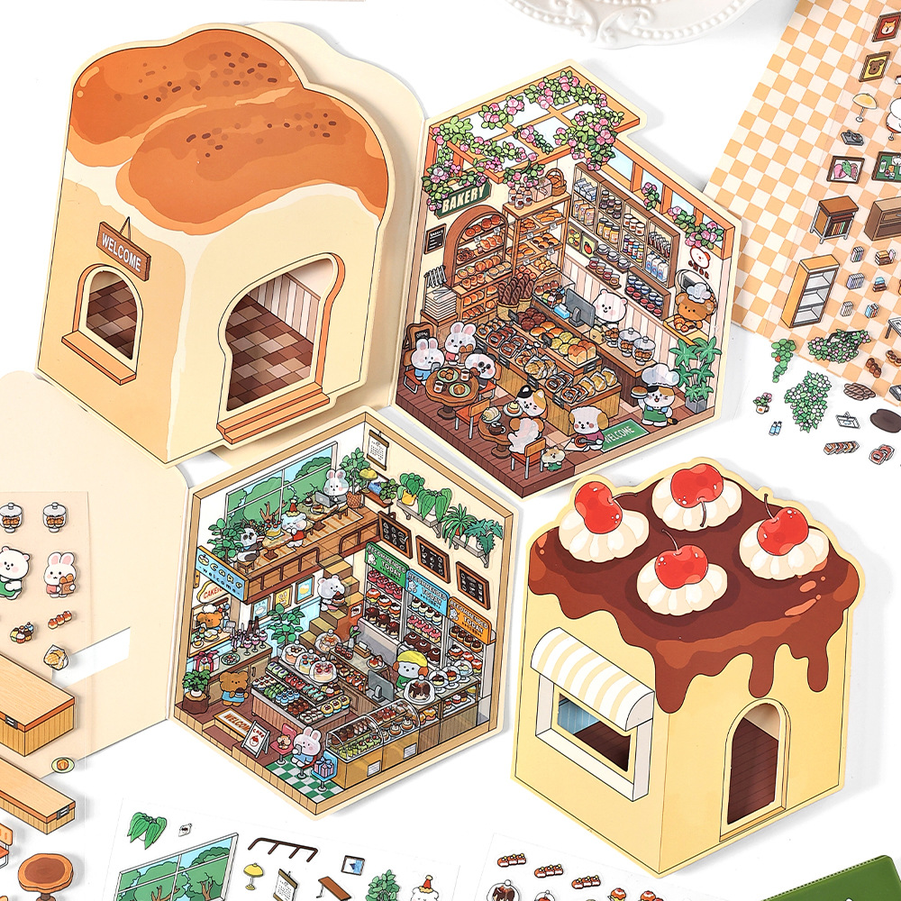 送镊子)造景贴纸微缩场景合集本贴纸本立体换装贴纸女孩儿童diy防水贴画亲子小游戏解压小屋玩具装饰小图案