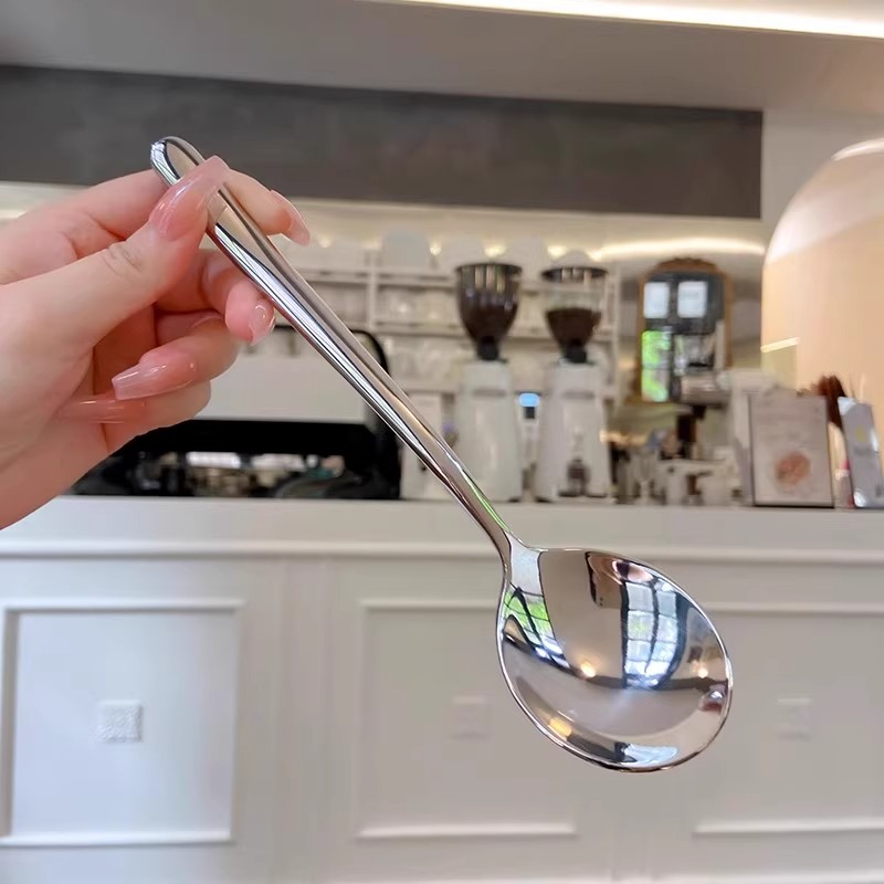 316不锈钢加厚家用干饭勺子304高颜值长柄拌饭勺网红喝汤学生吃饭