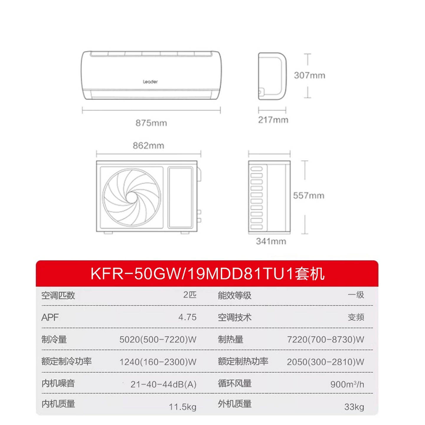 政府补贴海尔空调统帅2匹新一级变频客卧两用省电大挂机