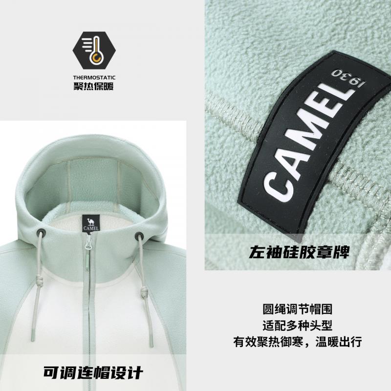 骆驼户外女开襟连帽抓绒衣男聚热保暖新款休闲徒步秋冬外套情侣款