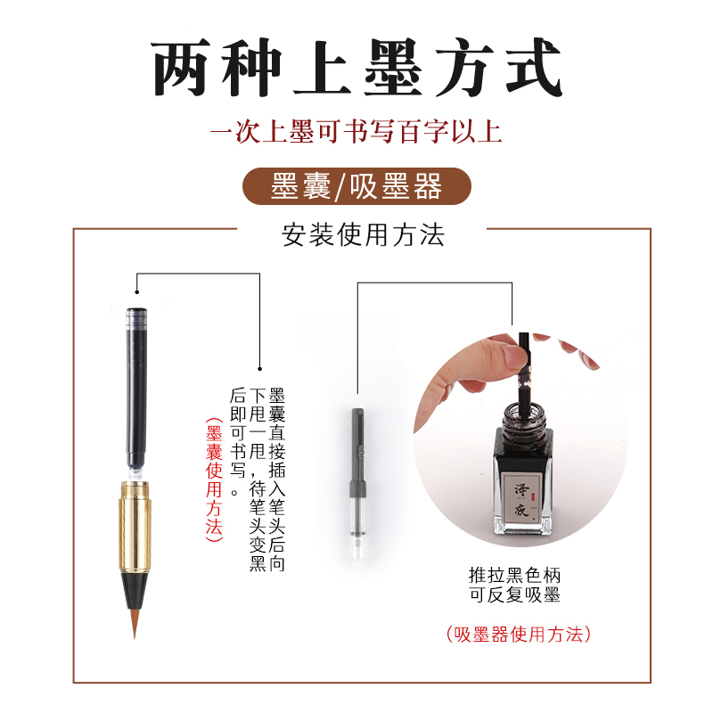 软笔钢笔式毛笔便携小楷毛笔可加墨自来水软头笔抄经笔秀丽笔初学者成人抄经书法笔便携墨囊钢笔毛笔