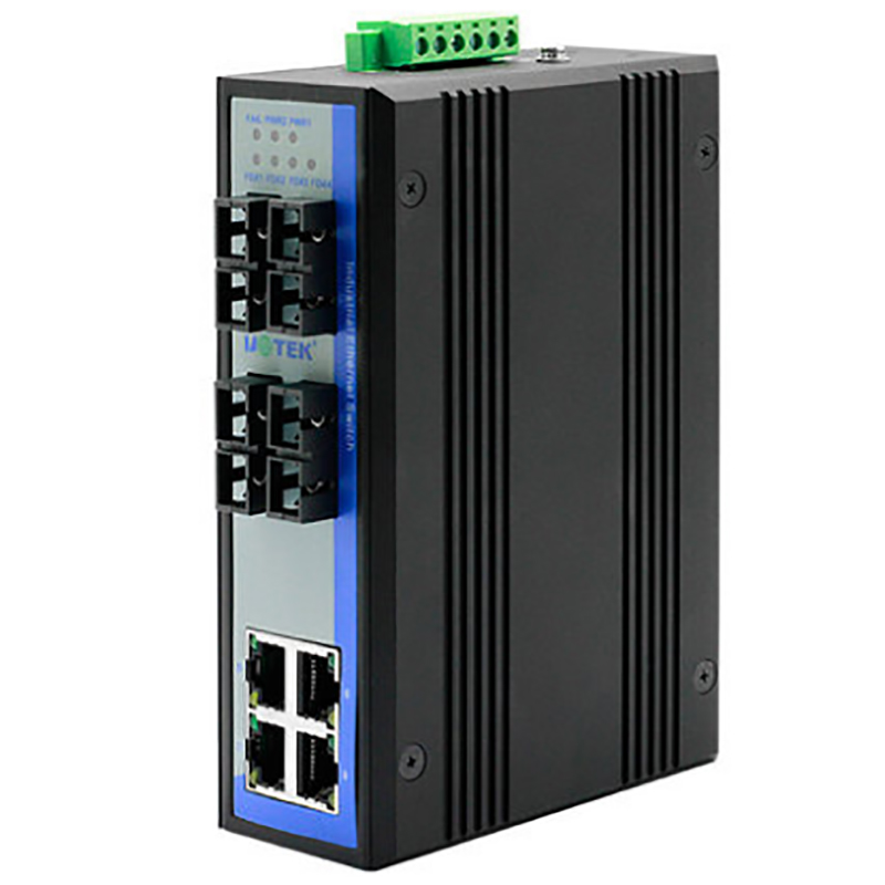 宇泰UT-60-D4T4SC 工业级非网管型8口以太网交换机光电转换器4电4光导轨式安装单模光纤网络交换通讯模块收发